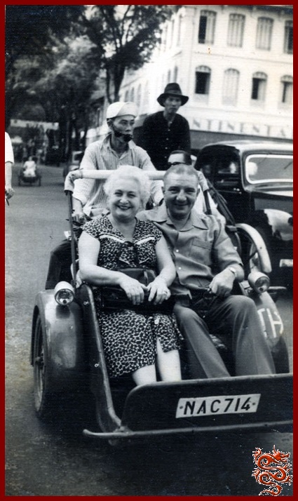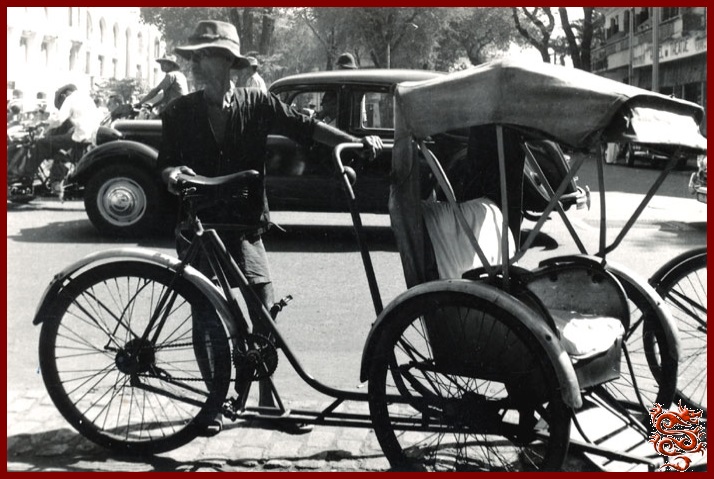 A droite : Un cyclo-pousse,