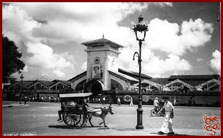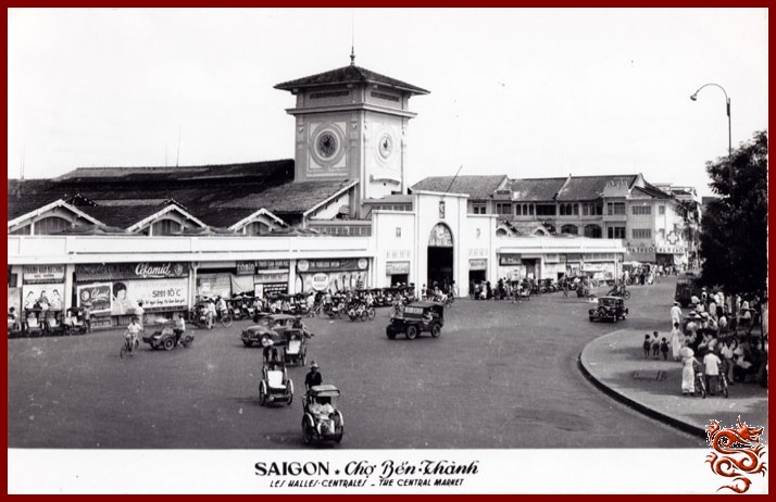 Le "Marché Central Saïgonnais ou Halles Centrales " (Halles Centrales), Il est situé à Le Loi (Bonard) à quatre pâté de maison de Tu Do (Catinat). La tour avec son horloge permet le l'identifier.