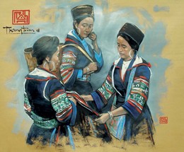 L’artiste peint les peuples Hmongs, Dao et Meo, vivant dans la région nord du pays, mais également en Chine, au Laos et en Thaïlande. Vêtus d’indigo aux couleurs vives, blanches, noirs ou bariolés.