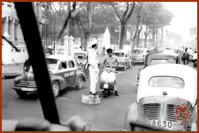 Parfois, dans cette rue encombrée de marchandises, des membres de la M.P. (Military Police) croisent des agents de la police vietnamienne. Ils ne regardent pas, ne se voient pas, trop occupé à lorgner du côté des bouteilles de Champagne à 800 piastres la bouteille, des flacons de parfum et des boîtes de conserves.
