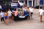 Devant le Café de la "Pointe des Blagueurs" il y avaient des sampans et des jonques de haute mer ainsi qu'une station-service Mobil.