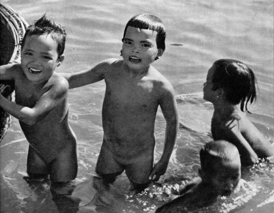 Quatre heures de l'après-midi : C'est la bonne heure pour le bain dans la baie des Cocotiers. Dans l'eau tiède où toute l'humanité se coudoie, chacun se sourit : la communion dans le plaisir se fait spontanément, quelle que soit la couleur de peau ou la situation sociale.
